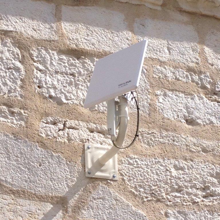 La pose d’une antenne et de sa borne Wifi en mode POE de part et d’autre de la rue s’est effectuée en l’espace d’une journée, câblage du nouveau local compris. Une mise sous tension, une séance de réglage directionnel et voici une extension reliée proprement au réseau local du bâtiment principal. Les tests de débits et des différents postes de téléphonie IP nous ont confirmé la justesse du choix, et ce dans un budget qui reste raisonnable. (au environ de 1500 euros matériel compris).